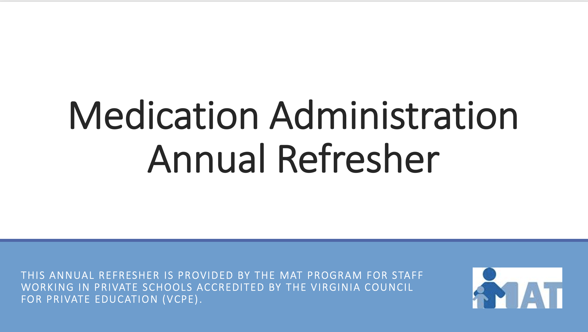 Course Overview: The MAT First Renewal Course covers administering oral liquid and tablet medications, inhalers and nebulizers, ear and eye medications, topical medications and EpiPen epinephrine auto-injector in a condensed format.